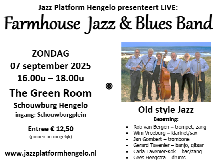 Live Jazzconcert met Farmhouse Jazz & Blues Band () (elke 1e zondag van de maand - tenzij anders vermeld)