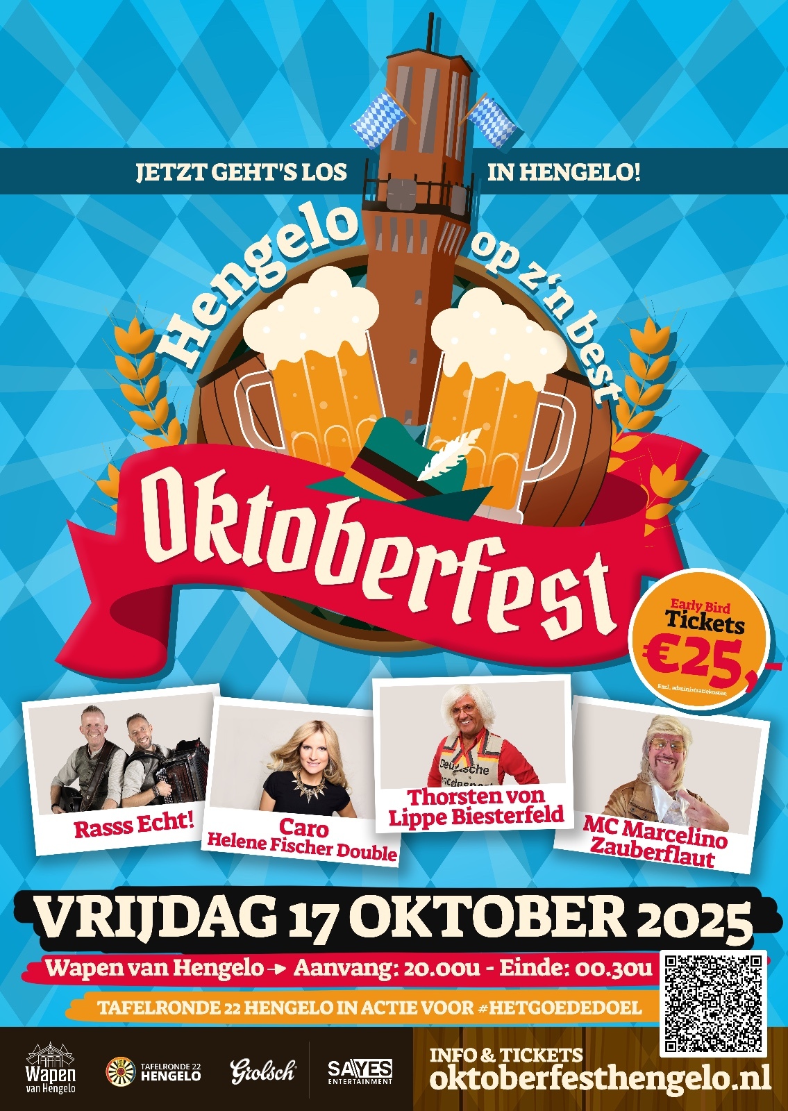 In het Wapen van Hengelo pakken we dit jaar nog groter uit: opzwepende Duitse schlager hits, de typische Alpen 'sound' van het duo Rasss Echt!, MC Marcelino, Caro - Helene Fischer Double, Thorsten von Lippe Biesterfeld, grote pullen bier, lange biertafels en een geweldige sfeer.ย