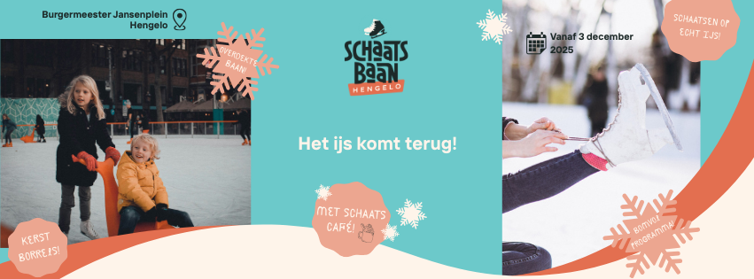 Welkom bij Schaatsbaan Hengelo, kom deze winter genieten van de gezelligste ijsbaan van Twente! Het ijs komt terug! Op het Burgemeester Jansenplein komt in december 2025 een overdekte en sfeervol aangeklede schaatsbaan met echt ijs en een gezellig schaatscafé. Bomvol activiteiten en mogelijkheden voor (kerst)borrels. Zoals het hoort bij een stad als Hengelo!