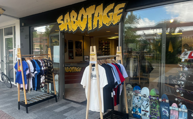 Midden in het centrum van Hengelo, aan het marktplein, vind je Sabotage Skateshop. Je vindt er zowel onderdelen voor je skateboard als de tofste streetwear. Van t-shirts, truien en broeken tot schoenen en jassen. Voor merken als Vans, Santa Cruz en Thrasher ben je hier aan het juiste adres. Ook als je niet skateboard trouwens.